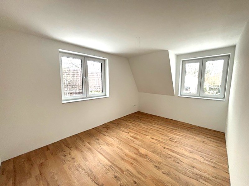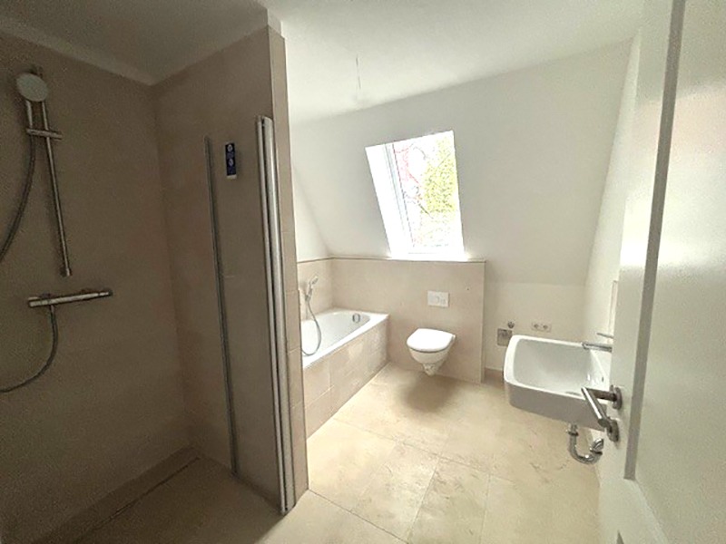 Im Erdgeschoss befindet sich ein großzügiger Wohn- und Essbereich mit direktem Zugang zur Terrasse. Große Fensterfronten lassen viel Tageslicht in die Räume. Die moderne Einbauküche ist mit einem Cerankochfeld, einem Backofen, einer Geschirrspülmaschine sowie einer Kühl-Gefrierkombination ausgestattet. Zusätzlich steht auf dieser Ebene ein Arbeits- oder Schlafzimmer zur Verfügung. Ein Gäste-WC ergänzt das Raumangebot. Im Obergeschoss liegen drei weitere Schlafzimmer sowie ein voll ausgestattetes Badezimmer. Das Dachgeschoss bietet zusätzliche Nutzfläche.